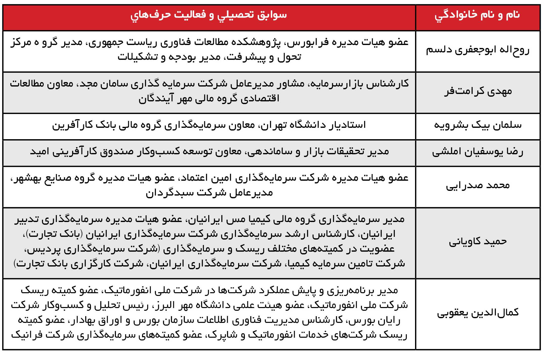 اعضای کمیته سرمایهگذاری